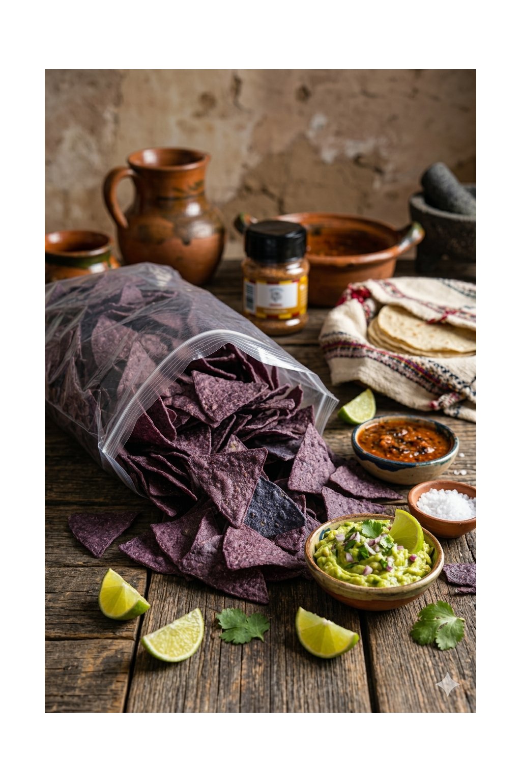 Zapomeň na obyčejné chipsy. Naše modro-fialové Totopos jsou vyrobeny tradičním způsobem z pravé Masa Hariny z modré kukuřice. Díky procesu nixtamalizace si zachovávají maximum živin a svou specifickou, bohatou chuť s lehce oříškovým podtónem. Jsou extra křupavé, pevné a ručně smažené tak, aby unesly i pořádnou porci guacamole nebo salsy, aniž by se zlomily.